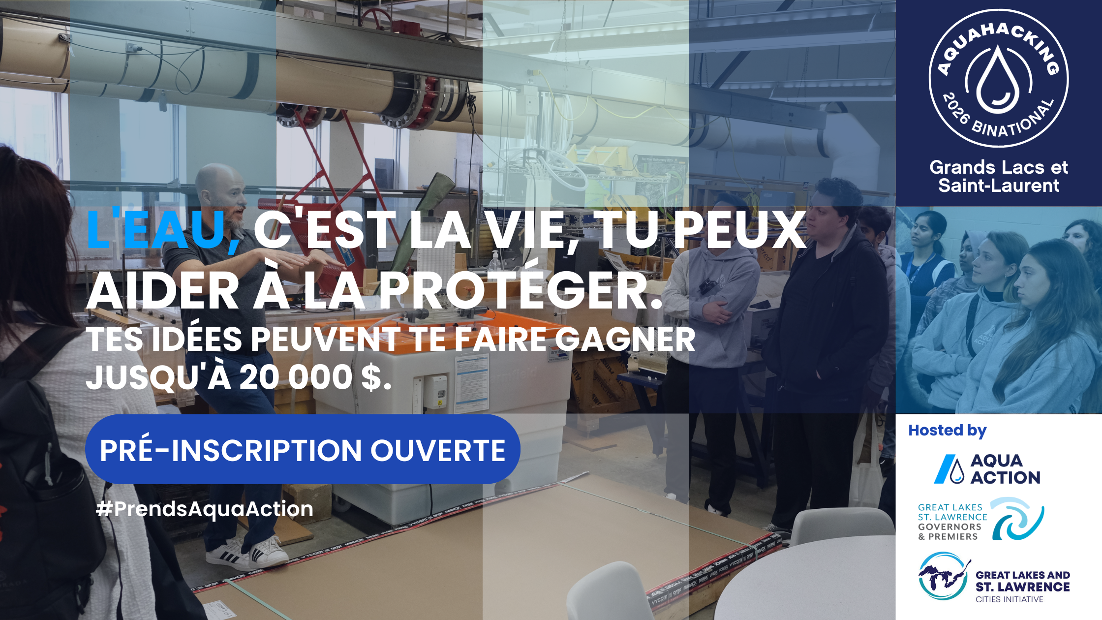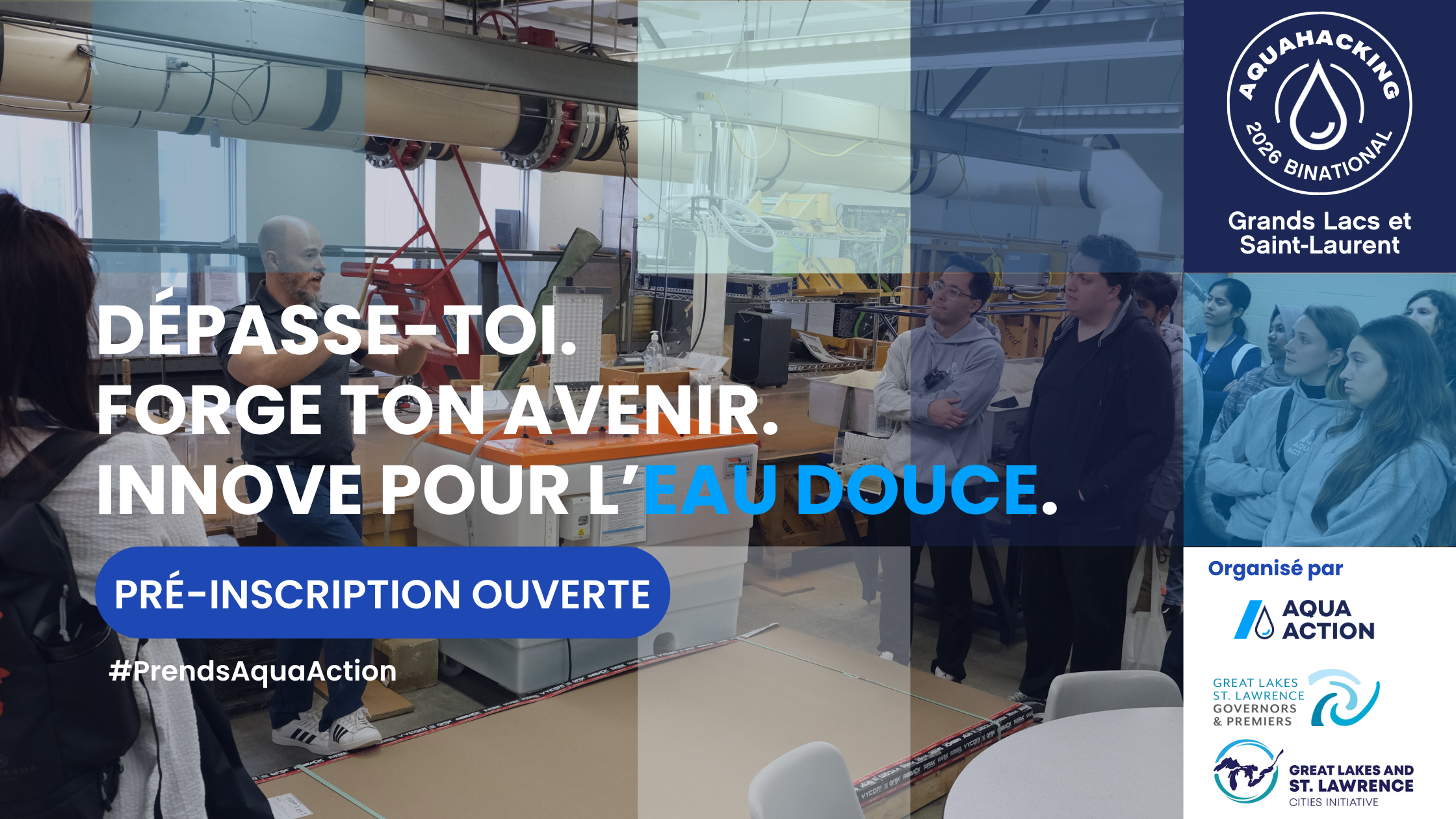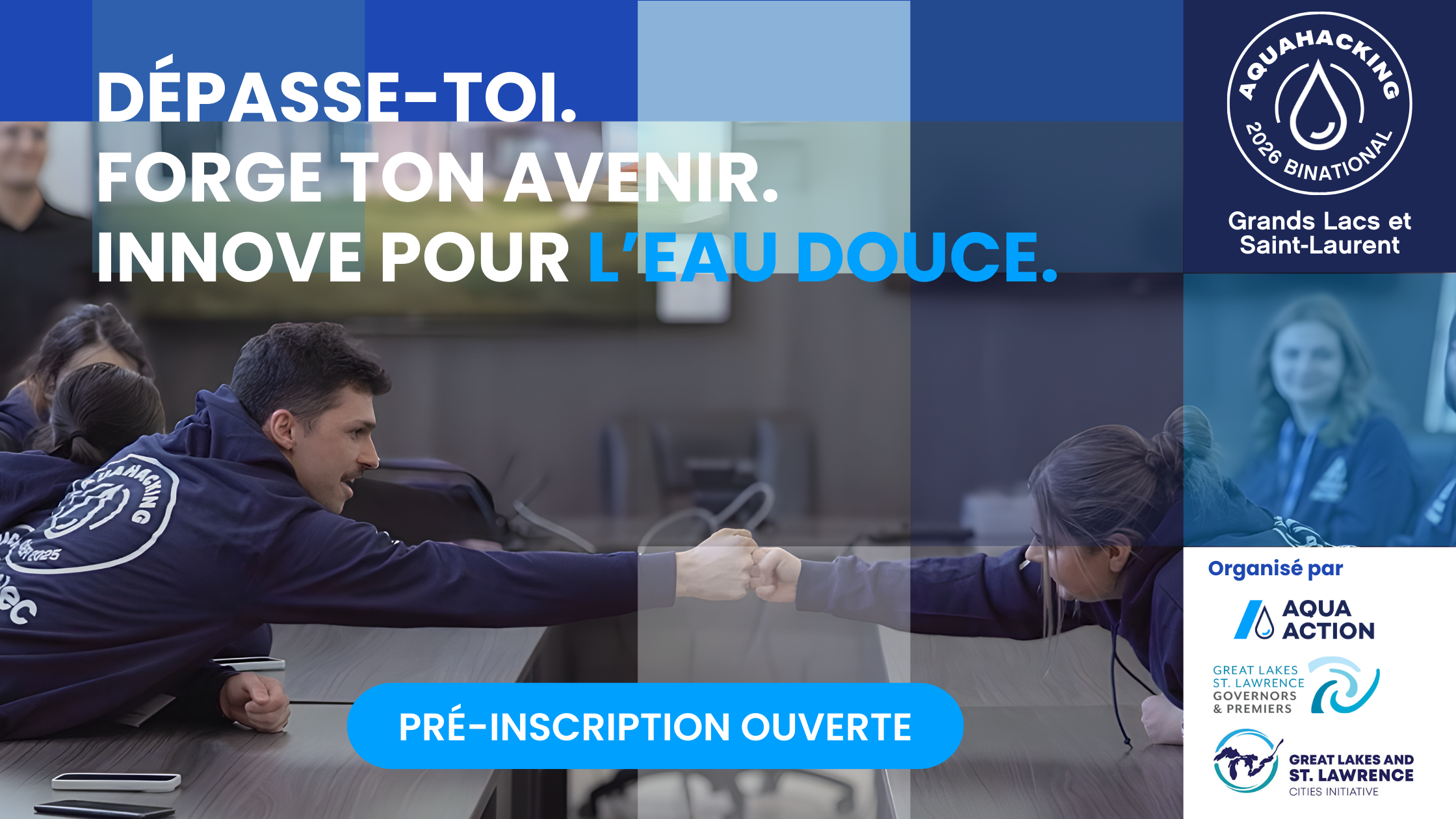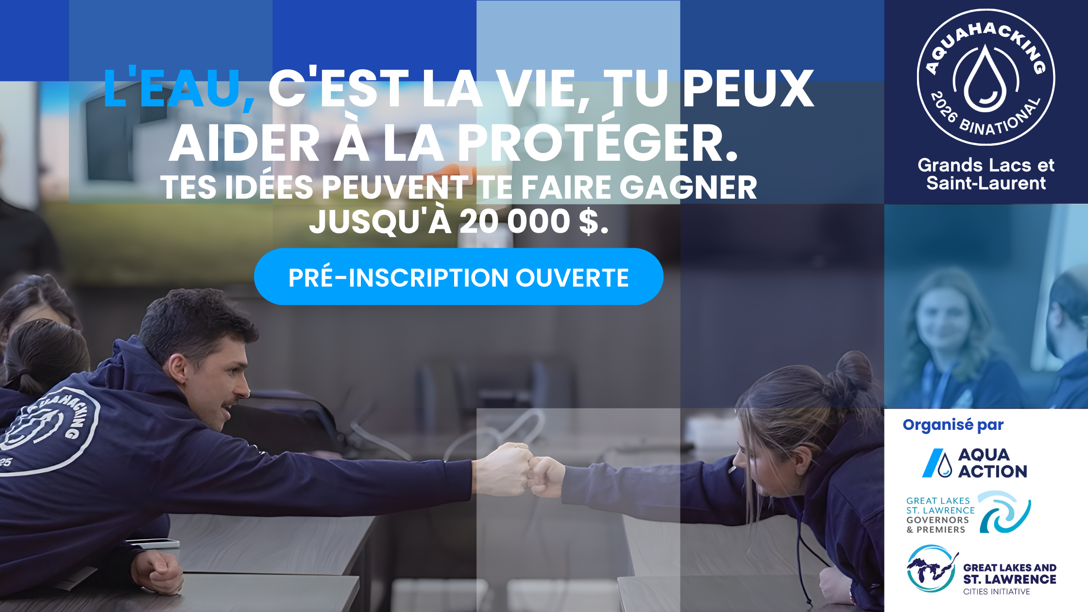 Le monde change rapidement, et on a besoin d'innovateurs prêts à le transformer pour le mieux. Le Programme AquaHacking Binational 2026 vous offre l'occasion de créer des solutions concrètes qui protègent notre eau et renforcent les communautés à travers l'Amérique du Nord.