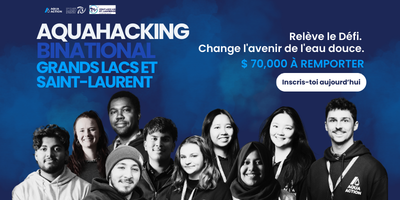 Axé sur les régions des Grands Lacs et du Saint-Laurent, l'un des écosystèmes d'eau douce les plus importants au monde, le Défi AquaHacking rassemble des esprits brillants du Canada et des États-Unis pour développer des solutions aux enjeux urgents liés à l'eau.