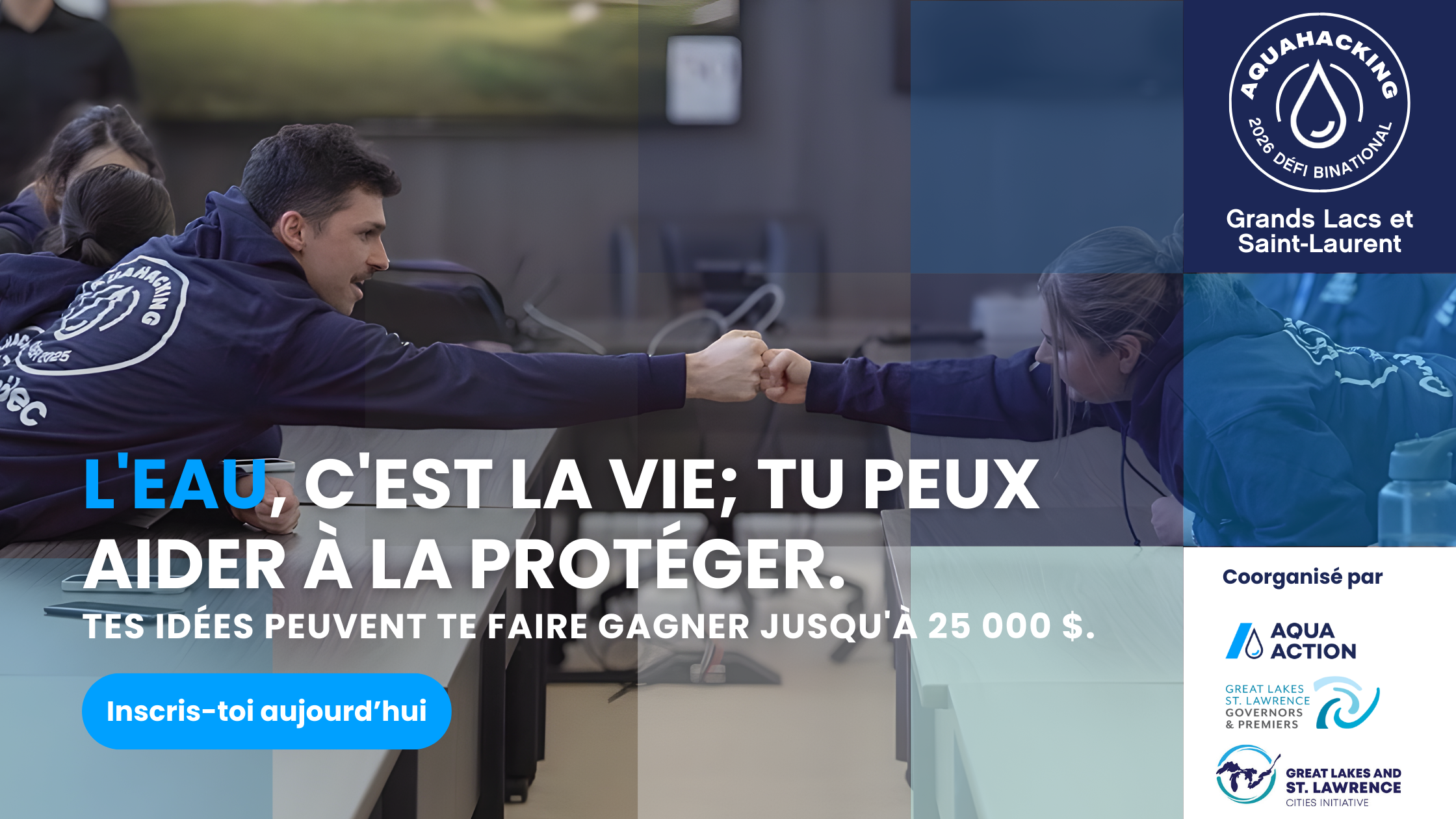 Utilisez votre talent et votre passion pour vous attaquer à des enjeux de l’eau tout en développant des compétences clés avec le Défi #AquaHacking Grands Lacs et Saint-Laurent 🌊